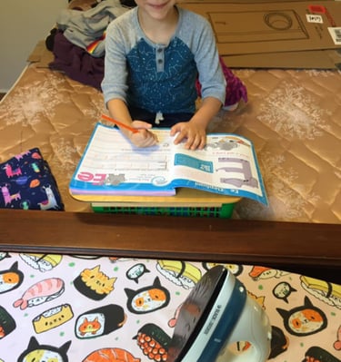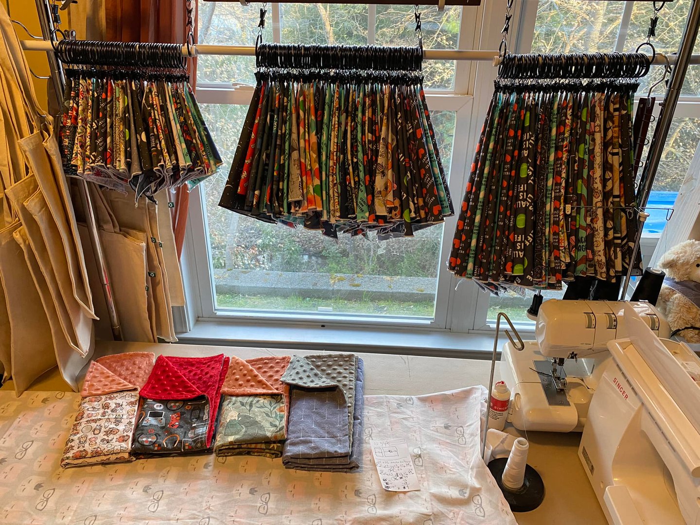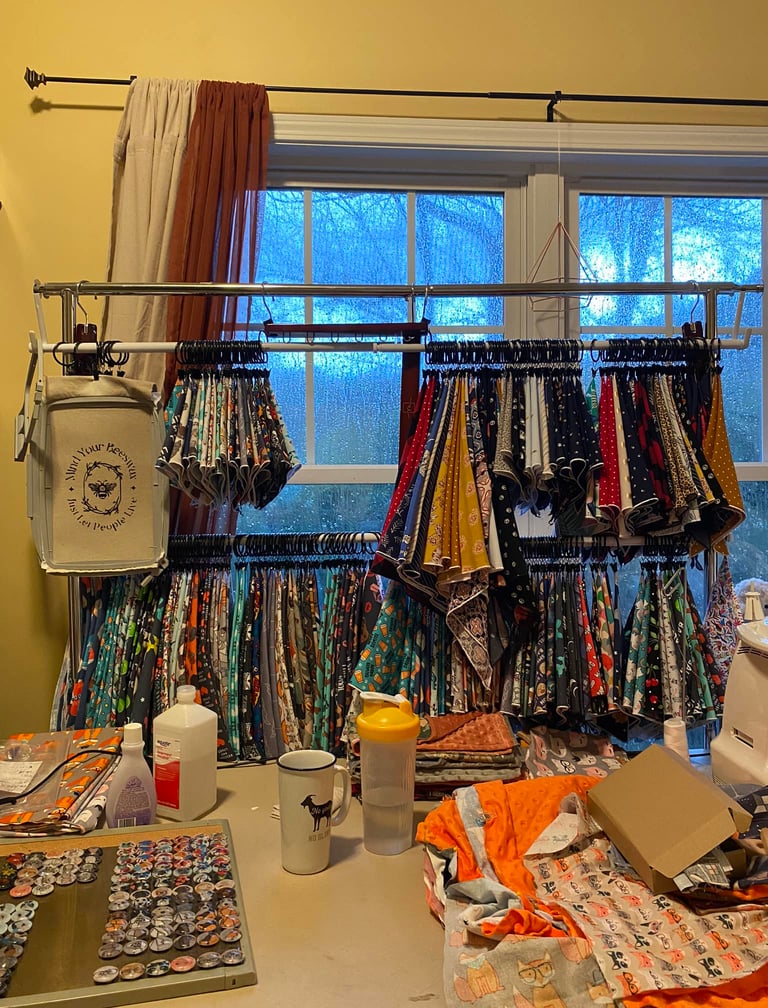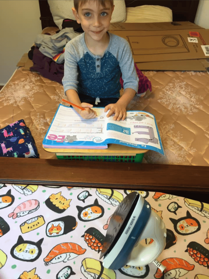 But in between zoom lessons, we made fabric face masks together with the funniest and weirdest