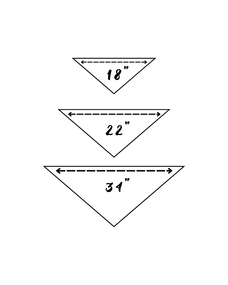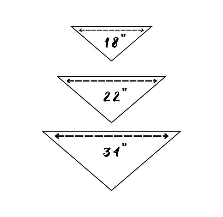 Note: We create our bandanas long in the center to simplify sizing. If you find that your bandana successfully ties on but the triangle looks too long on your pet, roll the neck edge of the bandana down until the triangle lays how you like it on your unique pet!